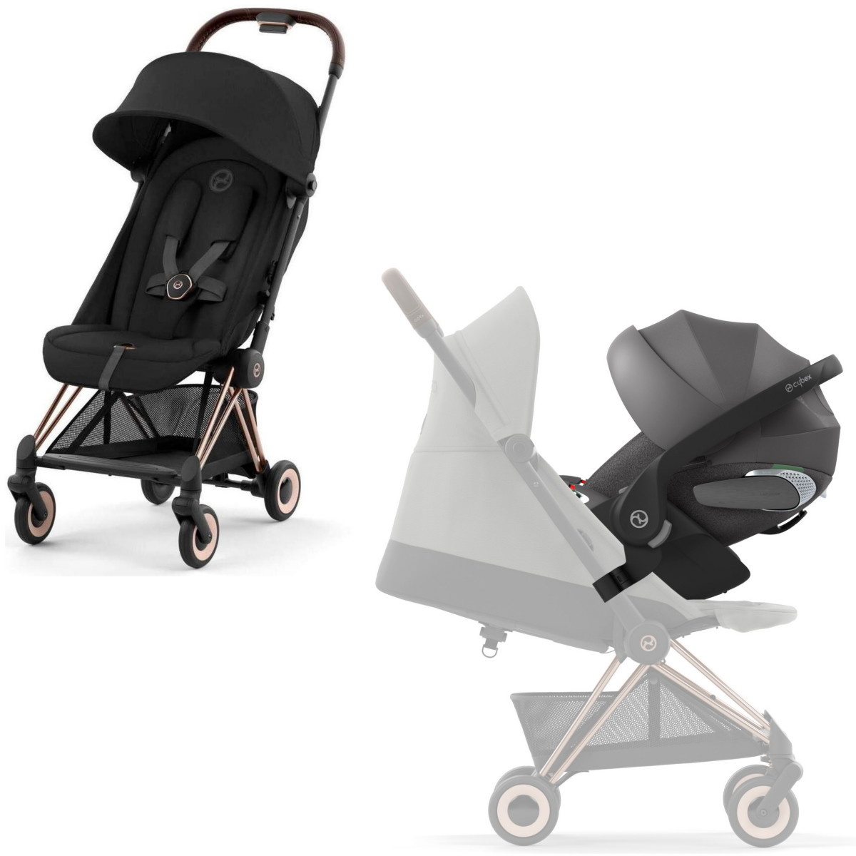 Коляска Cybex Coya Rosegold Frame Cloud T i-Size Mirage Grey Plus Sepia Black с дождевиком и бампером