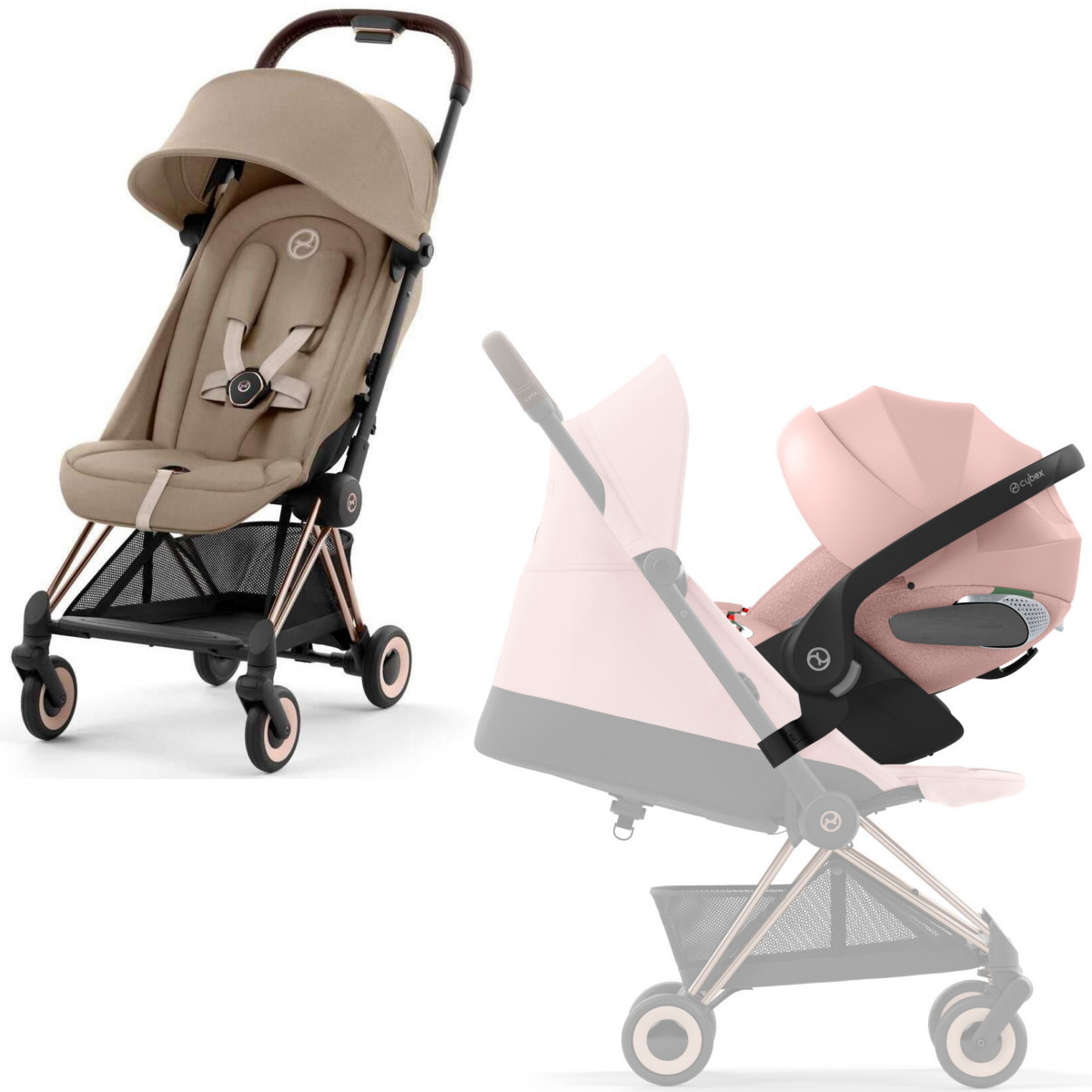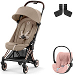 Коляска Cybex Coya Rosegold Frame Cloud T i-Size Peach Pink Plus Cozy Beige с дождевиком и бампером