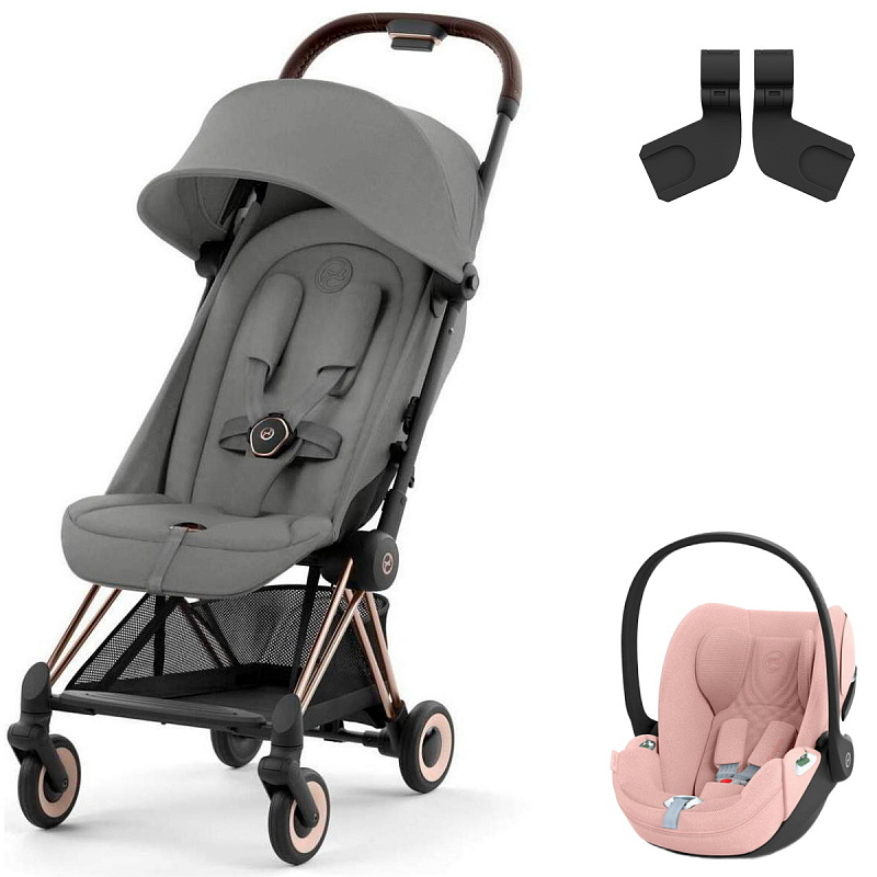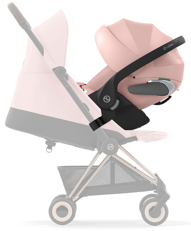 Коляска Cybex Coya Rosegold Frame Cloud T i-Size Peach Pink Plus Mirage Grey с дождевиком и бамперомНет оценокХарактеристики