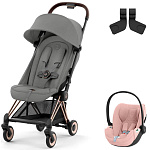 Коляска Cybex Coya Rosegold Frame Cloud T i-Size Peach Pink Plus Mirage Grey с дождевиком и бампером