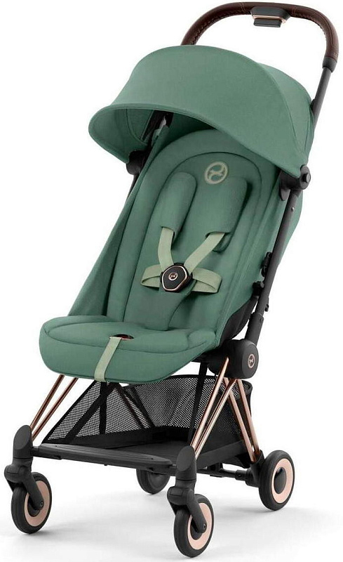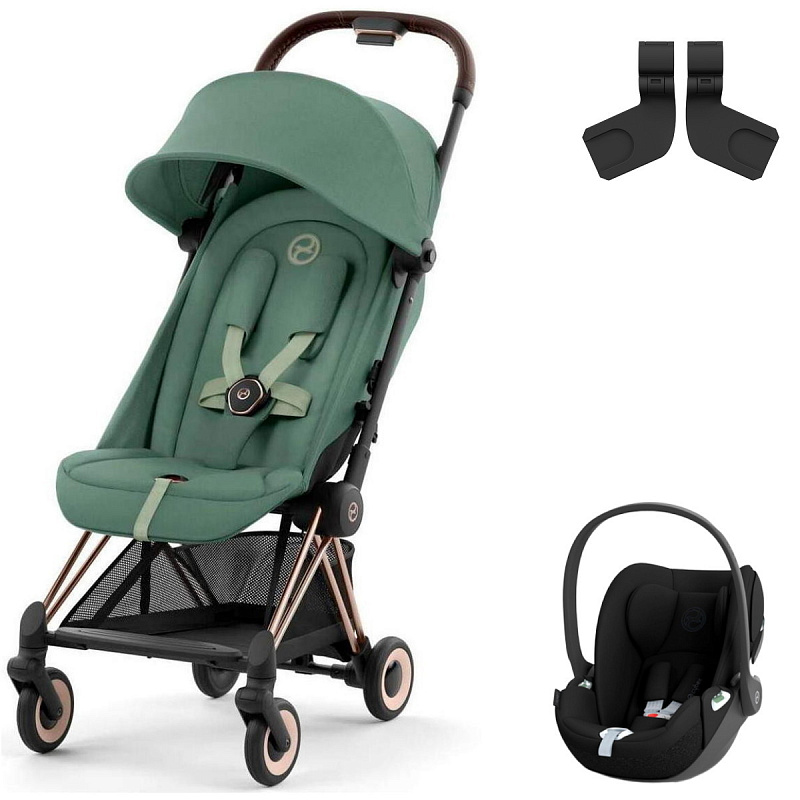 Коляска Cybex Coya Rosegold Frame Cloud T i-Size Sepia Black Leaf Green с дождевиком и бампером
