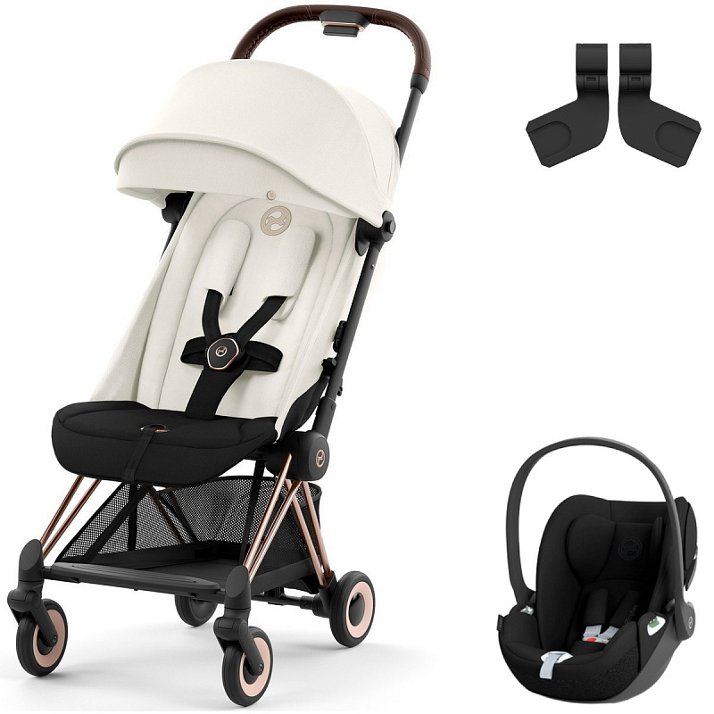 Коляска Cybex Coya Rosegold Frame Cloud T i-Size Sepia Black Off White с дождевиком и бампером