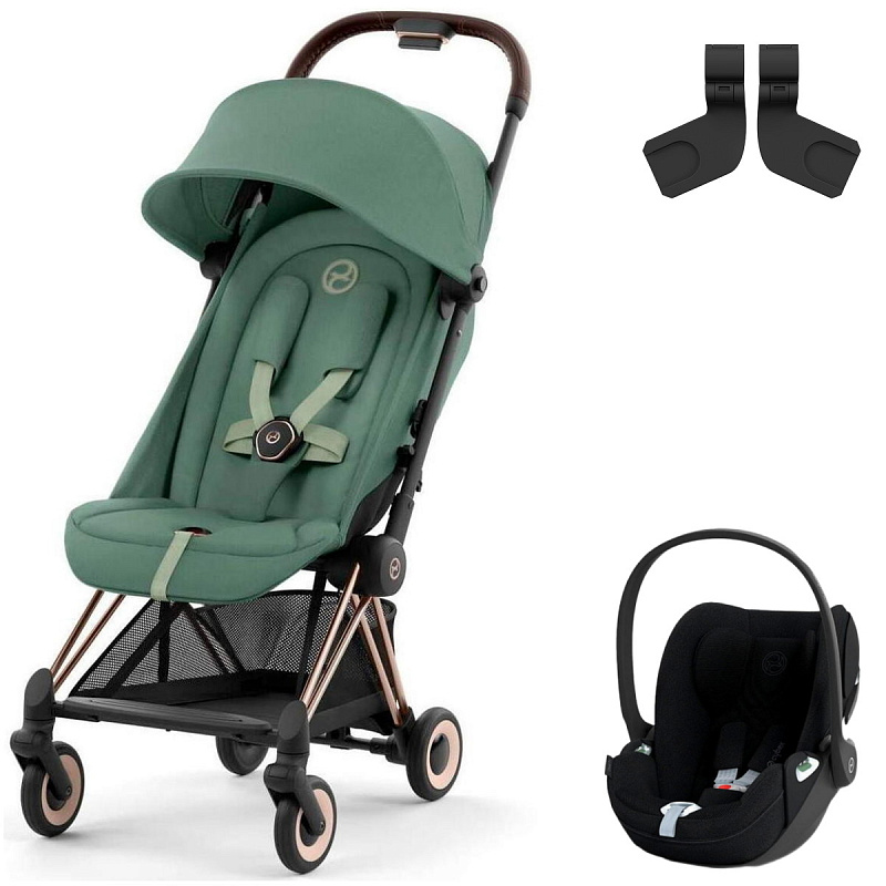 Коляска Cybex Coya Rosegold Frame Cloud T i-Size Sepia Black Plus Leaf Green с дождевиком и бампером