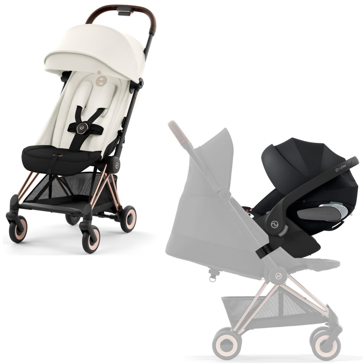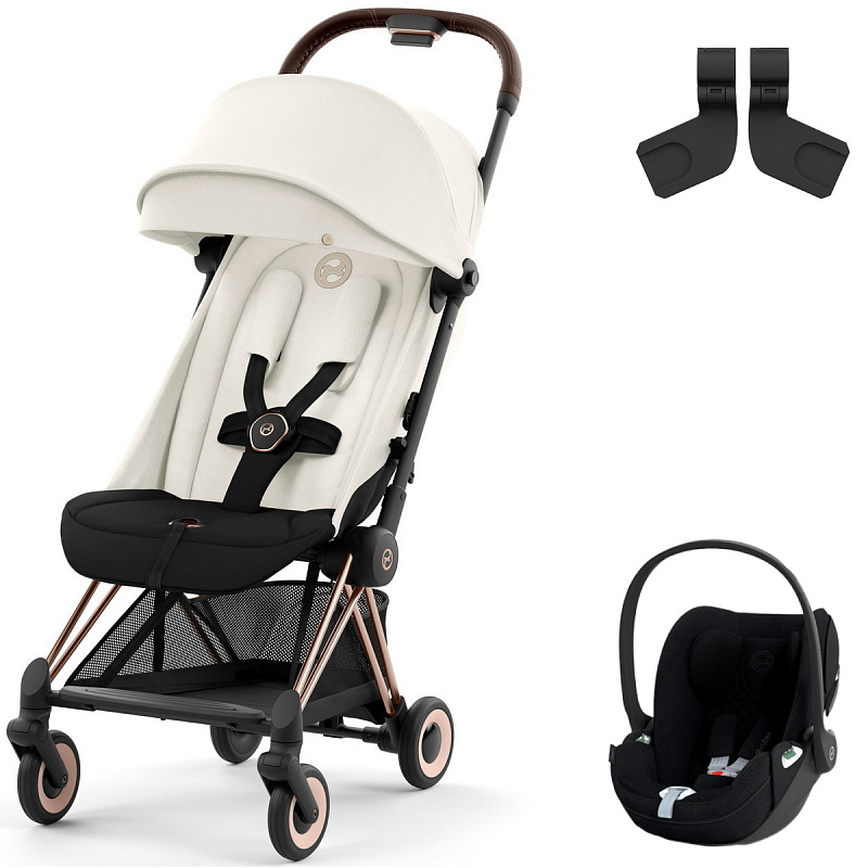 Коляска Cybex Coya Rosegold Frame Cloud T i-Size Sepia Black Plus Off White с дождевиком и бампером