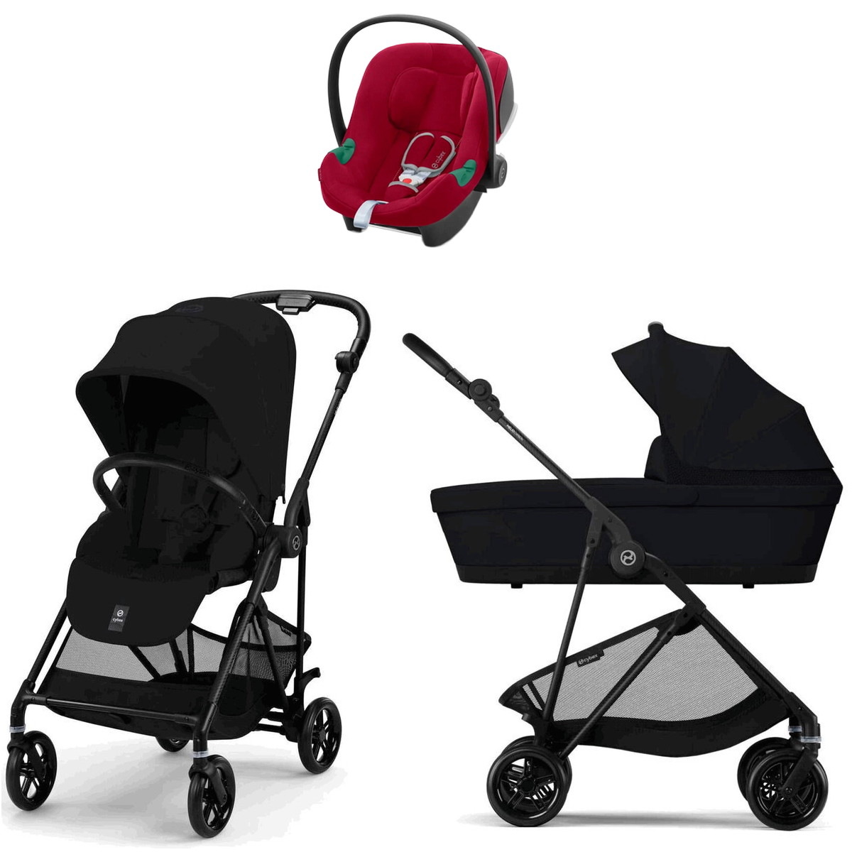 Коляска Cybex Melio Carbon Aton B2 i-Size Dynamic Red 3 в 1 Magic Black с дождевиками