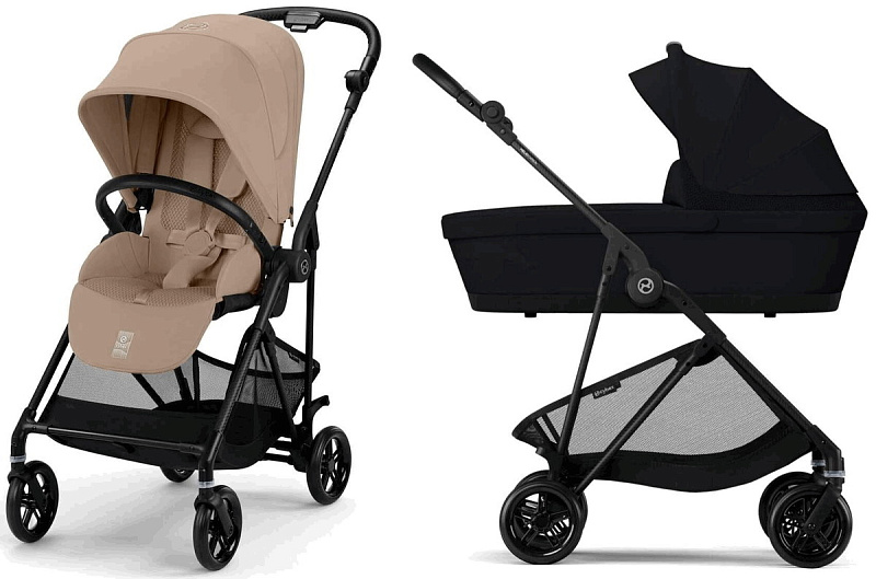 Коляска Cybex Melio Carbon Cloud G i-Size Almond Beige Plus 3 в 1 Almond Beige/Magic Black с дождевиками