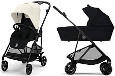 Коляска Cybex Melio Carbon Cloud G i-Size Almond Beige Plus 3 в 1 Canvas White/Magic Black с дождевиками