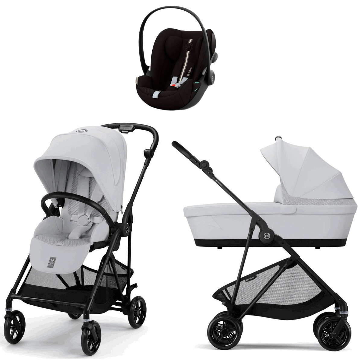 Коляска Cybex Melio Carbon Cloud G i-Size Moon Black Plus 3 в 1 Fog Grey с дождевиком