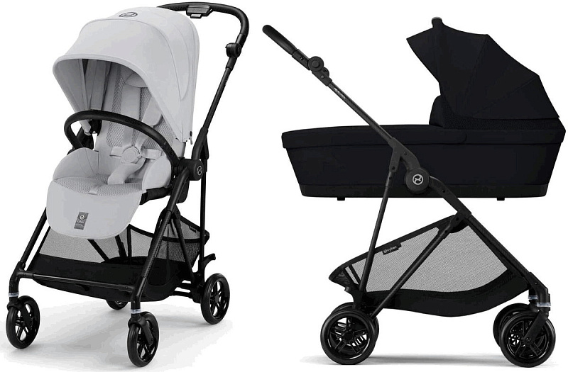 Коляска Cybex Melio Carbon Cloud G i-Size Moon Black Plus 3 в 1 Fog Grey/Magic Black с дождевиками