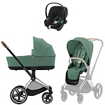 Коляска Cybex Priam IV Chrome Brown complete Aton B2 Volcano Black Base One 3 в 1 Leaf Green