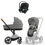 Коляска Cybex Priam IV Chrome Brown complete Aton B2 Volcano Black Base One 3 в 1 Mirage Grey