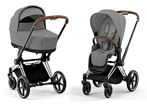 Коляска Cybex Priam IV Chrome Brown complete Cloud G Ocean Blue Plus Base G 3 в 1 Mirage Grey