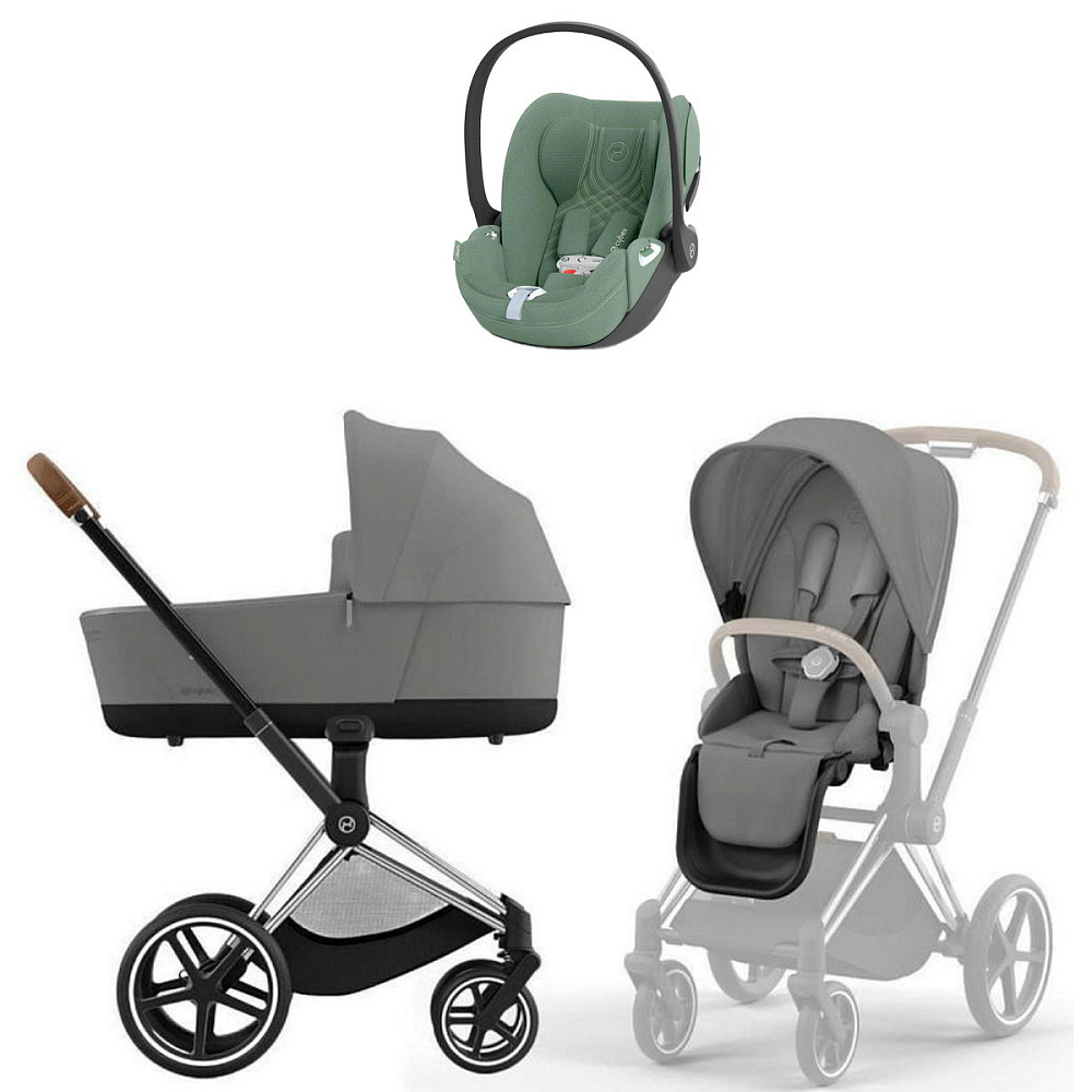 Коляска Cybex Priam IV Chrome Brown complete Cloud T Leaf Green Plus Base T 4 в 1 Mirage Grey