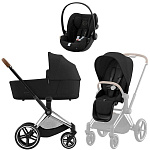 В комплекте: Рама (шасси) с каркасом прогулочного блока, набор чехлов прогулочного блока, спальный блок (люлька) Priam Lux, матрасик в люльку, дождевик для прогулочного блока, дождевик для люльки, автокресло Cloud T i-Size, комплект адаптеров для крепления автокресла на шасси коляски.
