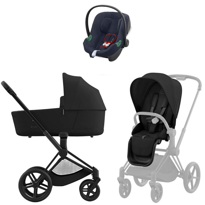 Коляска Cybex Priam IV Matt Black complete Aton B2 Bay Blue Base One 3 в 1 Sepia Black