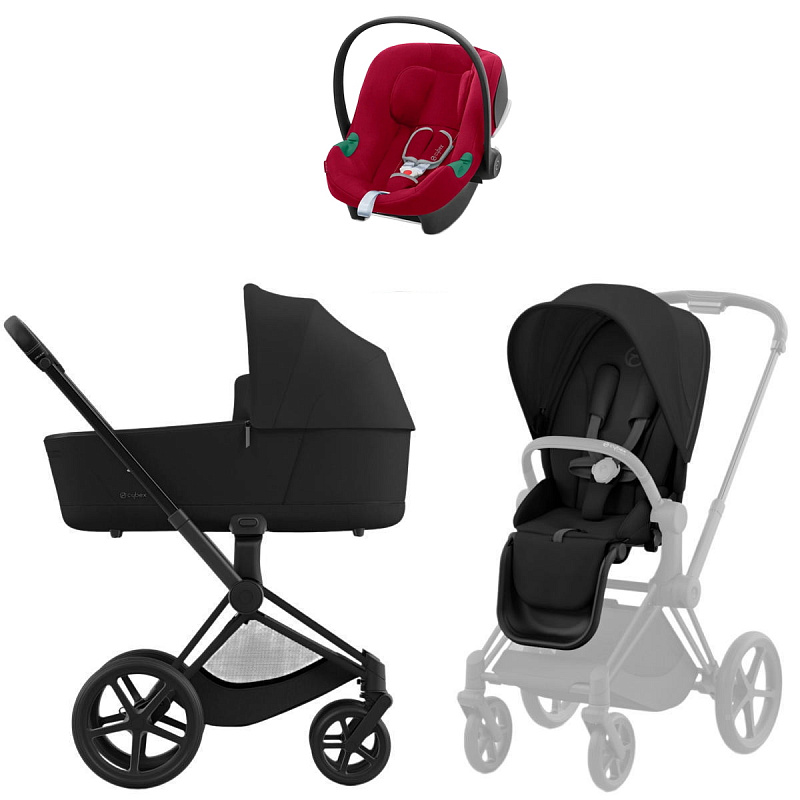 Коляска Cybex Priam IV Matt Black complete Aton B2 Dynamic Red Base One 3 в 1 Sepia Black