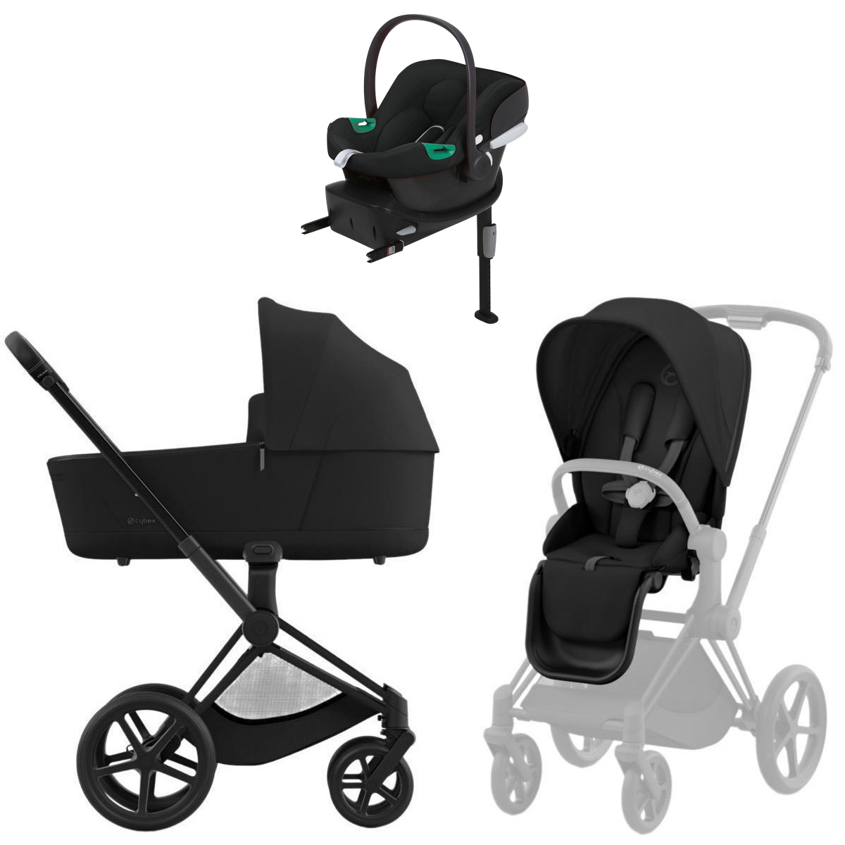 Коляска Cybex Priam IV Matt Black complete Aton B2 Volcano Black Base One 3 в 1 Sepia Black