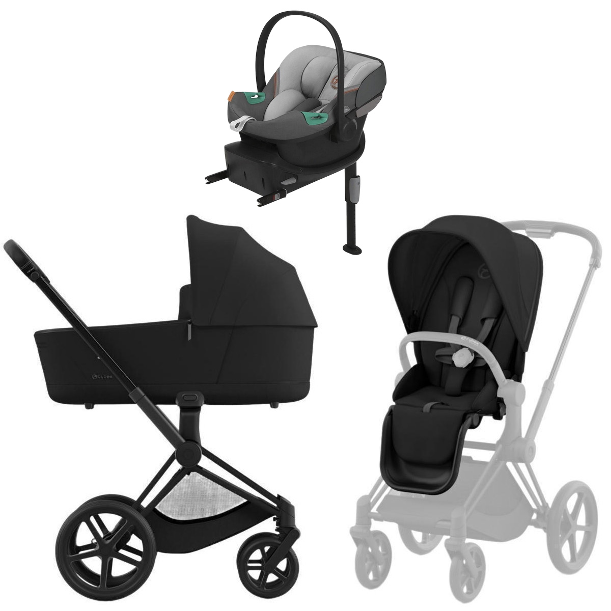 Коляска Cybex Priam IV Matt Black complete Aton S2 Lava Grey Base One 3 в 1 Sepia Black