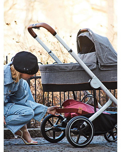 Безопасность вашего малыша обеспечивается пятиточечным ремнем безопасности и регулируемой подножкой с тремя положениями. Каркас коляски выполнен из высококачественного и прочного, но легкого алюминия, обеспечивая стабильность и прочность. Благодаря небольшой ширине шасси, коляска легко проходит через любые дверные проемы и помещается в лифт. Кроме того, шасси компактно складывается и имеет двухколесный режим, что позволяет преодолевать препятствия с легкостью. Передние колеса поворачиваются на 360 градусов, придавая коляске Priam невероятную маневренность. Сайбекс Приам 4 имеет очень большую корзину для покупок, выдерживающий вес до 5 кг. Вместительная корзина для покупок раскладывается, когда вам нужно больше места во время поездки или похода по магазинам.