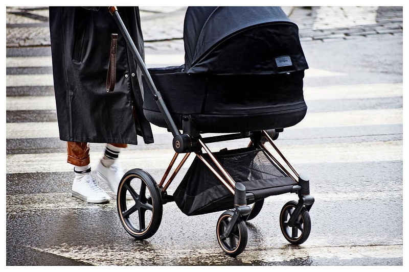 Безопасность вашего малыша обеспечивается пятиточечным ремнем безопасности и регулируемой подножкой с тремя положениями. Каркас коляски выполнен из высококачественного и прочного, но легкого алюминия, обеспечивая стабильность и прочность. Благодаря небольшой ширине шасси, коляска легко проходит через любые дверные проемы и помещается в лифт. Кроме того, шасси компактно складывается и имеет двухколесный режим, что позволяет преодолевать препятствия с легкостью. Передние колеса поворачиваются на 360 градусов, придавая коляске Priam невероятную маневренность. Сайбекс Приам 4 имеет очень большую корзину для покупок, выдерживающий вес до 5 кг. Вместительная корзина для покупок раскладывается, когда вам нужно больше места во время поездки или похода по магазинам.