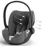 Одной из ключевых особенностей автолюльки Cybex Cloud T i-Size является система защиты от боковых ударов L.S.P. Она максимально поглощает энергию при боковом столкновении, обеспечивая дополнительную безопасность для ребенка. Боковые бортики также служат для оптимальной защиты в случае бокового удара.