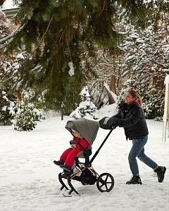 Cybex Priam IV имеет несколько возможных комбинаций по сборке, в зависимости от возраста вашего ребенка. Вы можете прикрепить спальный блок (люльку) Priam IV (Priam Lux) к раме и получить отличную коляску для новорожденных, которую смело можно использовать для прогулок и путешествий с ребенком в возрасте до 6 месяцев. Максимальный вес ребёнка в этой сборке предусматривается в 9 кг. После достижения малышом полугода, можно спальный блок заменить набором чехлов прогулочного блока и в несколько движений получить отличную уникальную прогулочную детскую коляску, которую уже можно использовать для перевозки ребенка до достижения им возраста 4 лет или максимального веса в 22 кг. Но это ещё не все, к раме Cybex Priam IV можно прикрепить таким же образом автокресло (автолюльку) Cybex. Поэтому, вы сможете использовать коляску на протяжении нескольких лет. Инновационная детская коляска Cybex Priam IV была разработана с учетом максимального комфорта как для ребенка, так и для его родителей. Эта модель коляски не только обновила свой дизайн, но и стала более функциональной и удобной. Она обладает гибкостью, которая позволяет удовлетворить все пожелания родителей. Коляска Priam IV от немецкого производителя Cybex устанавливает новые стандарты в области технологий и дизайна детских колясок. Cybex предлагает первоклассную функциональность, комфорт и легкость, а также моду и роскошь. Кроме того, каждая деталь, ткань и строчка коляски демонстрируют ее стиль, премиальность и удобство, которые делают ее привлекательной не только для ребенка, но и для родителей, ценящих качественные вещи. Стильный и легкий силуэт коляски Cybex Priam IV скрывает в себе множество продуманных деталей. Скрытые пружины амортизации, вставки из карбона и невидимые молнии придают коляске особый шарм. Прогулочный блок можно установить в любом направлении - по ходу движения или лицом к маме. И независимо от положения блока, коляска легко складывается. Кнопки снятия блока имеют эффект памяти, поэтому нет необходимости удерживать их в нажатом положении, достаточно нажать на них поочередно, и блок можно переставить.
