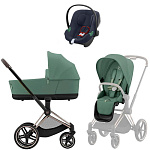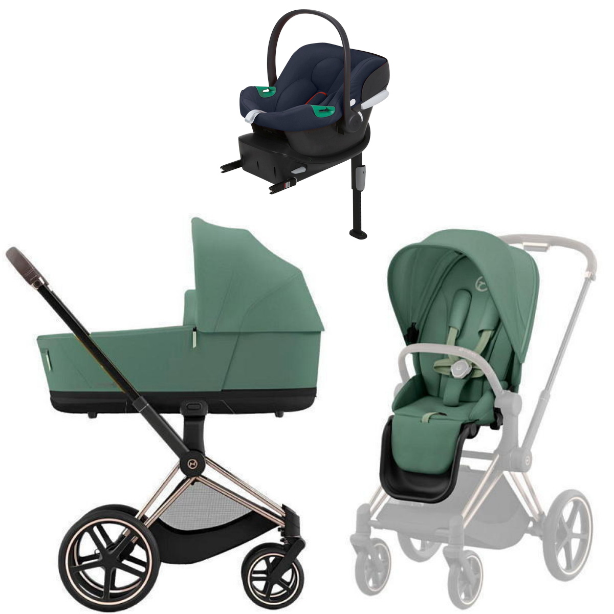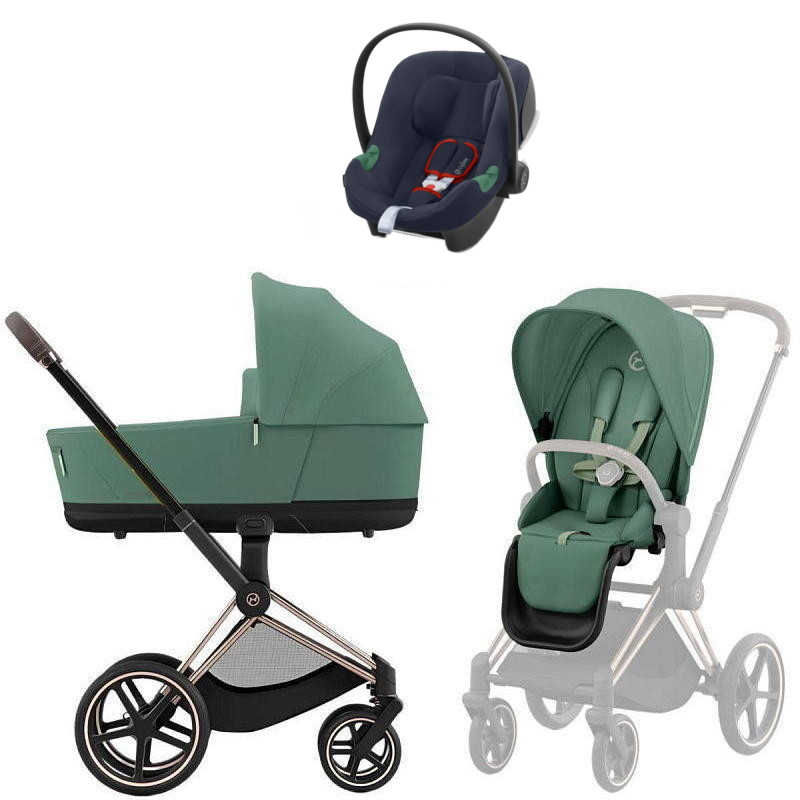 Коляска Cybex Priam IV Rosegold complete Aton B2 Bay Blue Base One 3 в 1 Leaf Green