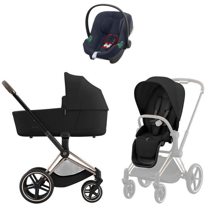 Коляска Cybex Priam IV Rosegold complete Aton B2 Bay Blue Base One 3 в 1 Sepia BlackНет оценокХарактеристики
