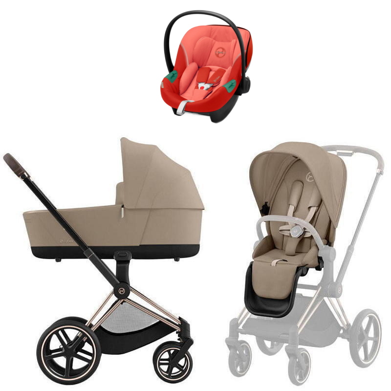 Коляска Cybex Priam IV Rosegold complete Aton S2 Hibiscus Red Base One 4 в 1 Cozy BeigeНет оценокХарактеристики
