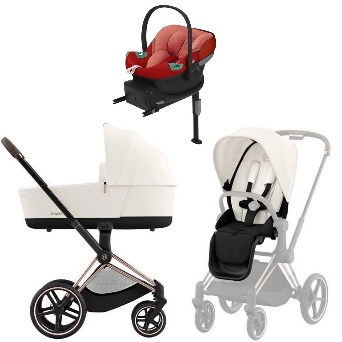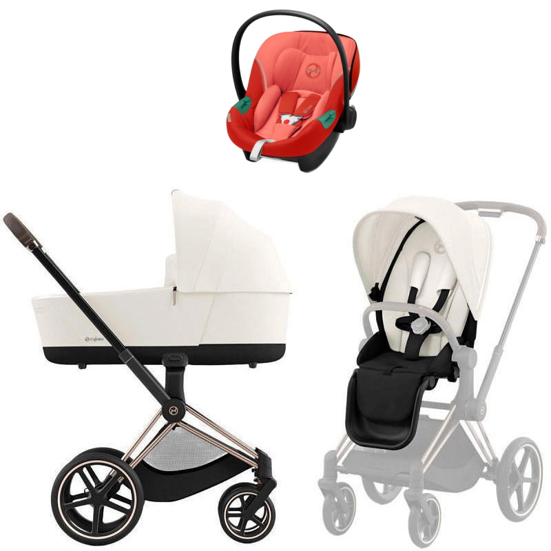 Коляска Cybex Priam IV Rosegold complete Aton S2 Hibiscus Red Base One 4 в 1 Off White