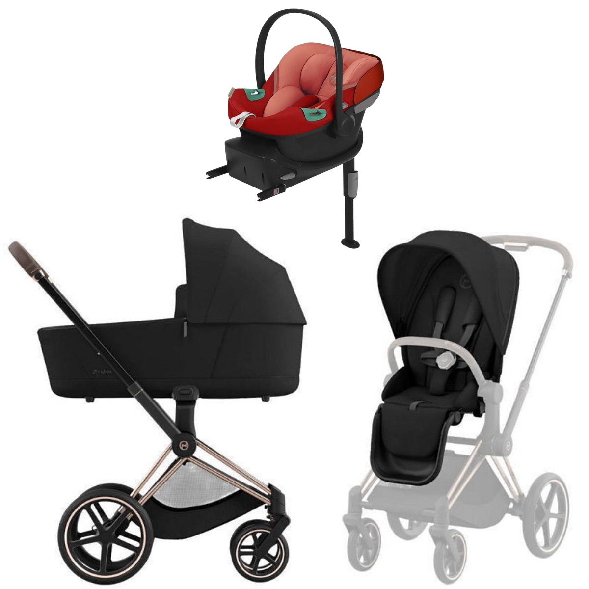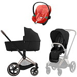 Коляска Cybex Priam IV Rosegold complete Aton S2 Hibiscus Red Base One 4 в 1 Sepia BlackНет оценокХарактеристики