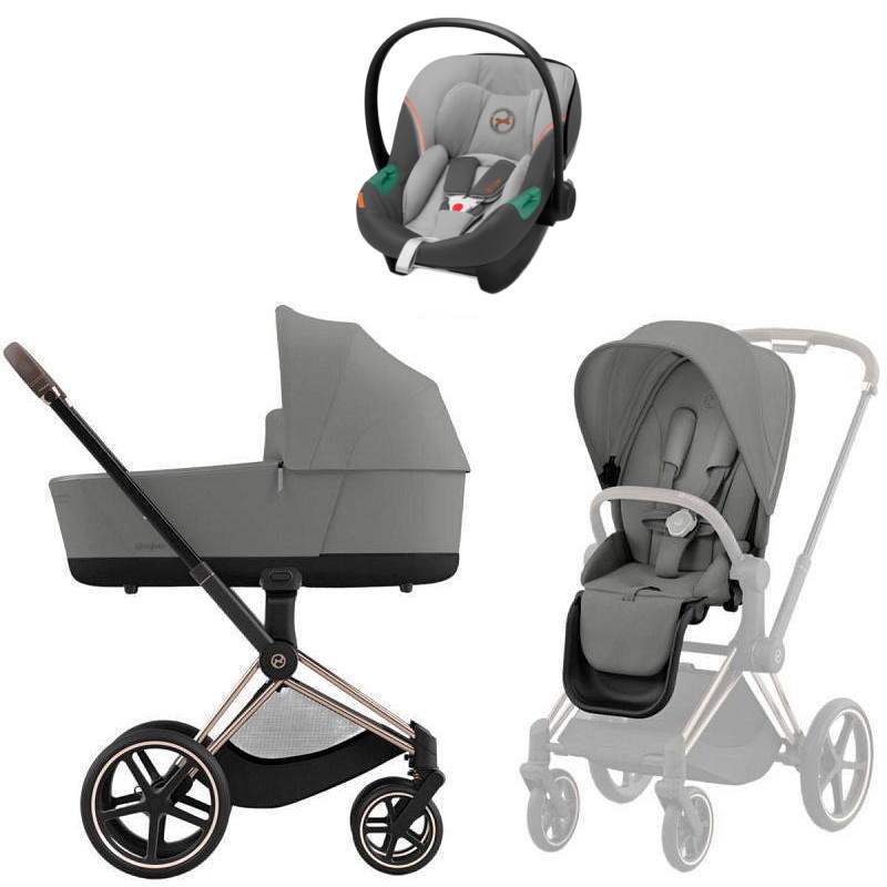 Коляска Cybex Priam IV Rosegold complete Aton S2 Lava Grey Base One 4 в 1 Mirage Grey
