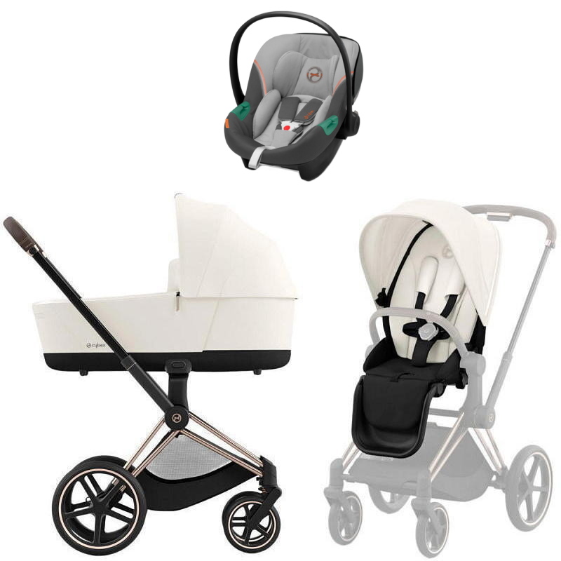 Коляска Cybex Priam IV Rosegold complete Aton S2 Lava Grey Base One 4 в 1 Off WhiteНет оценокХарактеристики