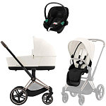 Коляска Cybex Priam IV Rosegold complete Aton S2 Moon Black Base One 4 в 1 Off White