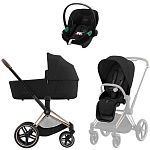 Коляска Cybex Priam IV Rosegold complete Aton S2 Moon Black Base One 4 в 1 Sepia Black