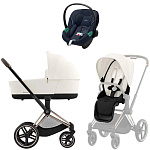 Коляска Cybex Priam IV Rosegold complete Aton S2 Ocean Blue Base One 4 в 1 Off White