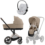 Коляска Cybex Priam IV Rosegold complete Cloud G Fog Grey Base G 3 в 1 Cozy Beige
