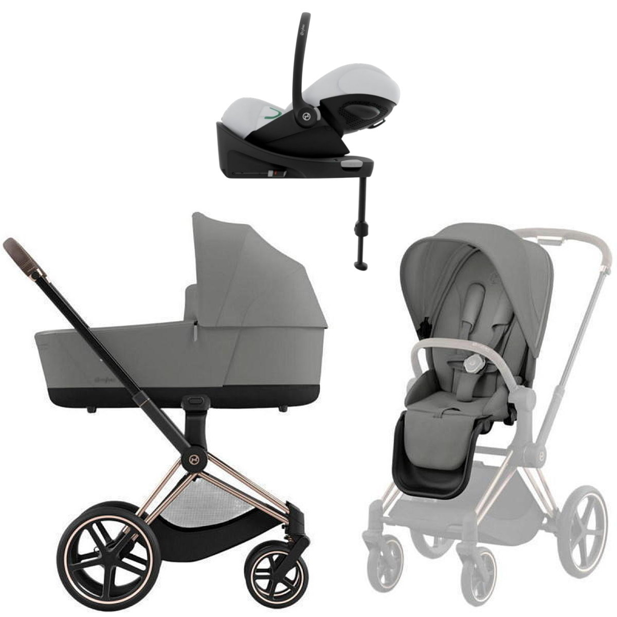Коляска Cybex Priam IV Rosegold complete Cloud G Fog Grey Base G 3 в 1 Mirage Grey