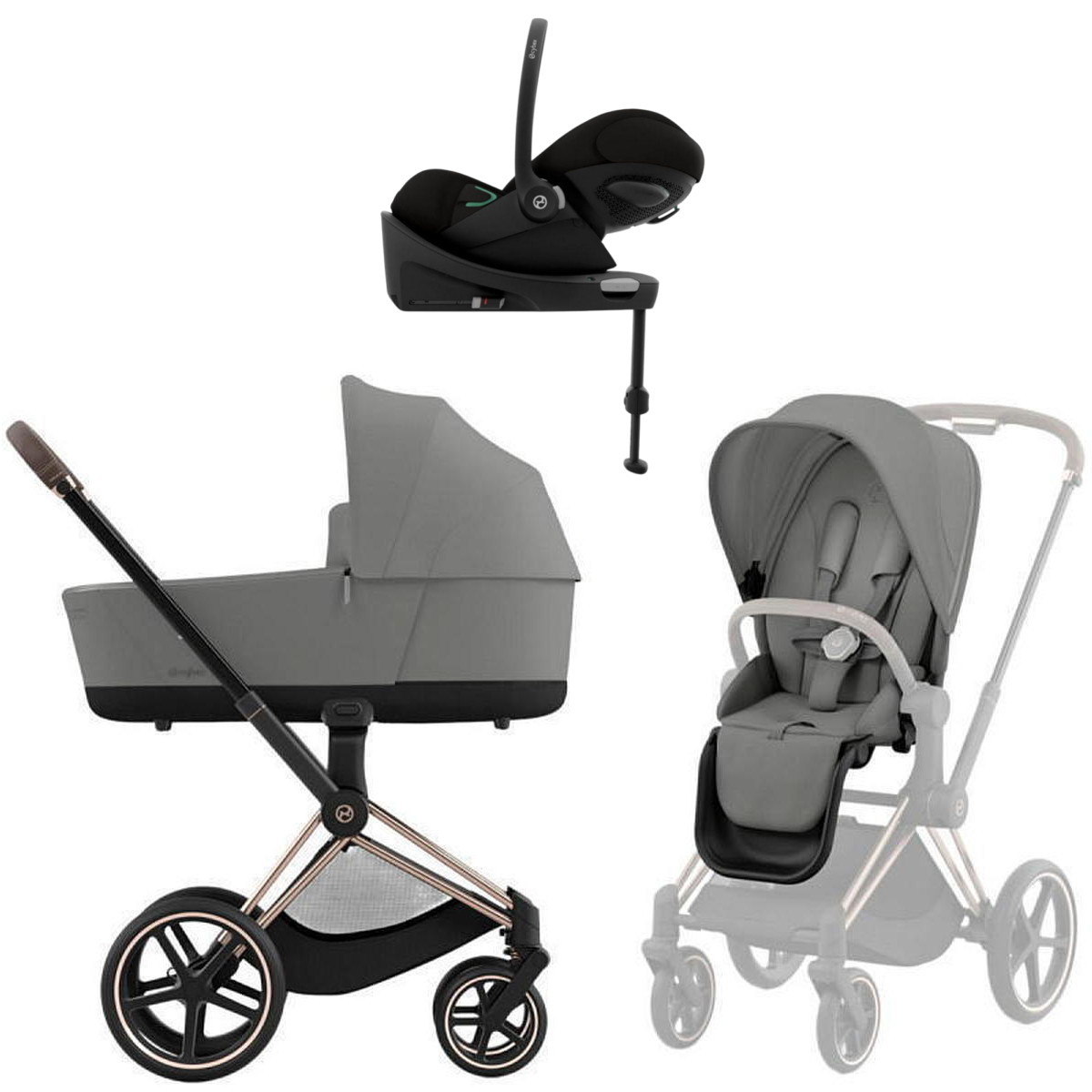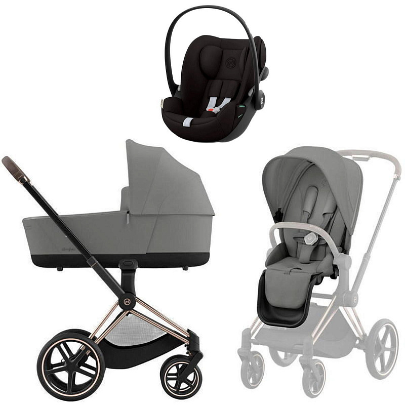 Коляска Cybex Priam IV Rosegold complete Cloud G Magic Black Base G 3 в 1 Mirage Grey