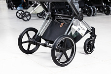 Безопасность вашего малыша обеспечивается пятиточечным ремнем безопасности и регулируемой подножкой с тремя положениями. Каркас коляски выполнен из высококачественного и прочного, но легкого алюминия, обеспечивая стабильность и прочность. Благодаря небольшой ширине шасси, коляска легко проходит через любые дверные проемы и помещается в лифт. Кроме того, шасси компактно складывается и имеет двухколесный режим, что позволяет преодолевать препятствия с легкостью. Передние колеса поворачиваются на 360 градусов, придавая коляске Priam невероятную маневренность. Сайбекс Приам 4 имеет очень большую корзину для покупок, выдерживающий вес до 5 кг. Вместительная корзина для покупок раскладывается, когда вам нужно больше места во время поездки или похода по магазинам.