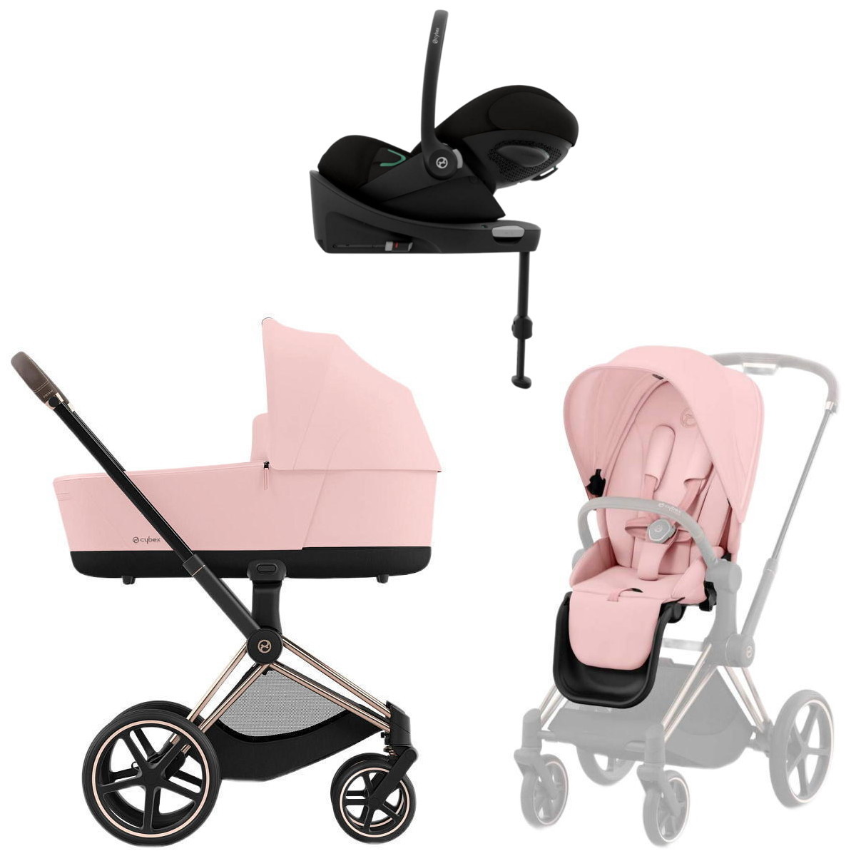 Коляска Cybex Priam IV Rosegold complete Cloud G Magic Black Base G 3 в 1 Peach Pink