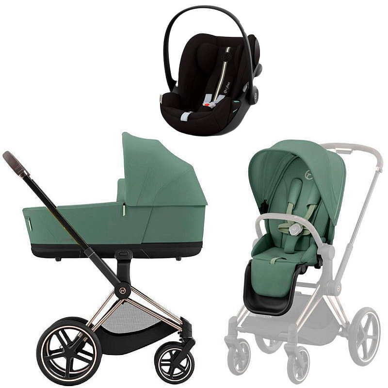 Коляска Cybex Priam IV Rosegold complete Cloud G Moon Black Plus Base G 3 в 1 Leaf Green