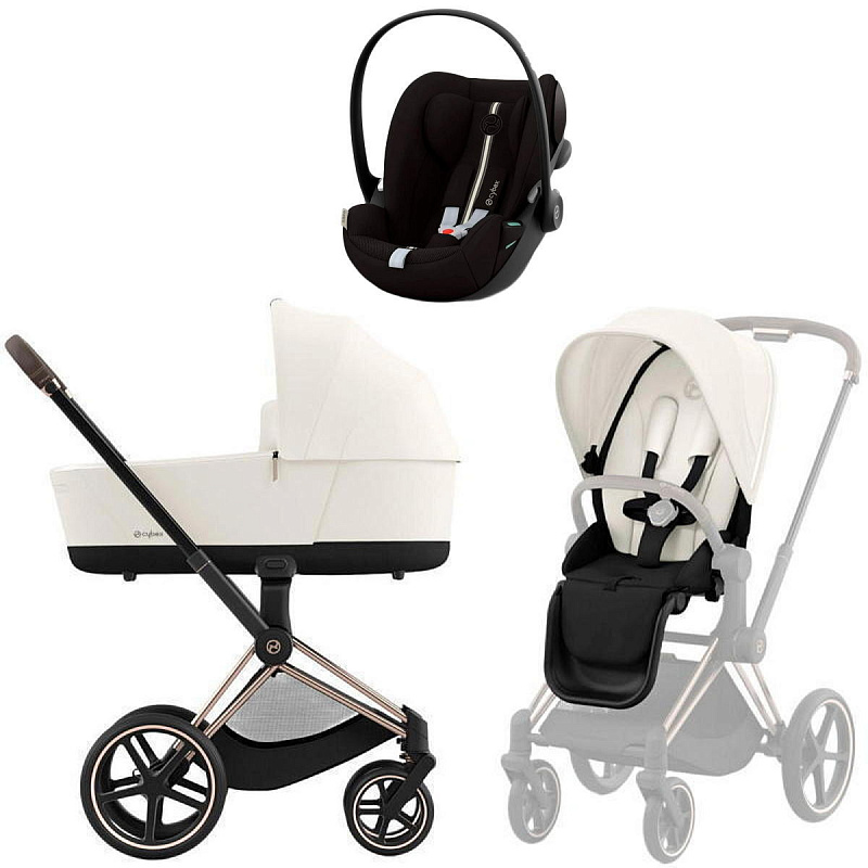 Коляска Cybex Priam IV Rosegold complete Cloud G Moon Black Plus Base G 3 в 1 Off White