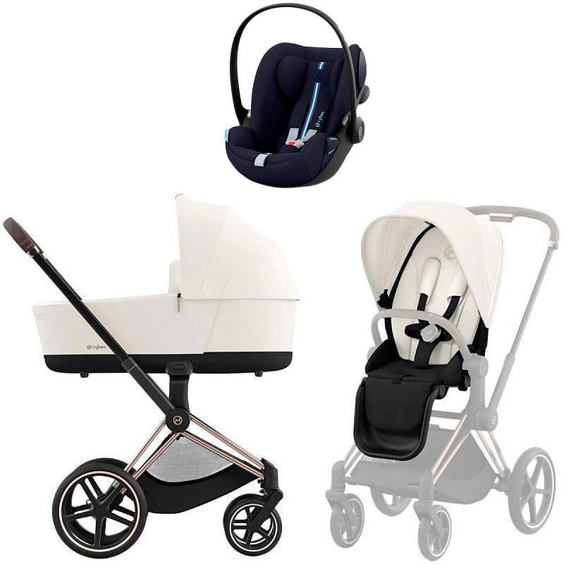 Коляска Cybex Priam IV Rosegold complete Cloud G Ocean Blue Plus Base G 3 в 1 Off White