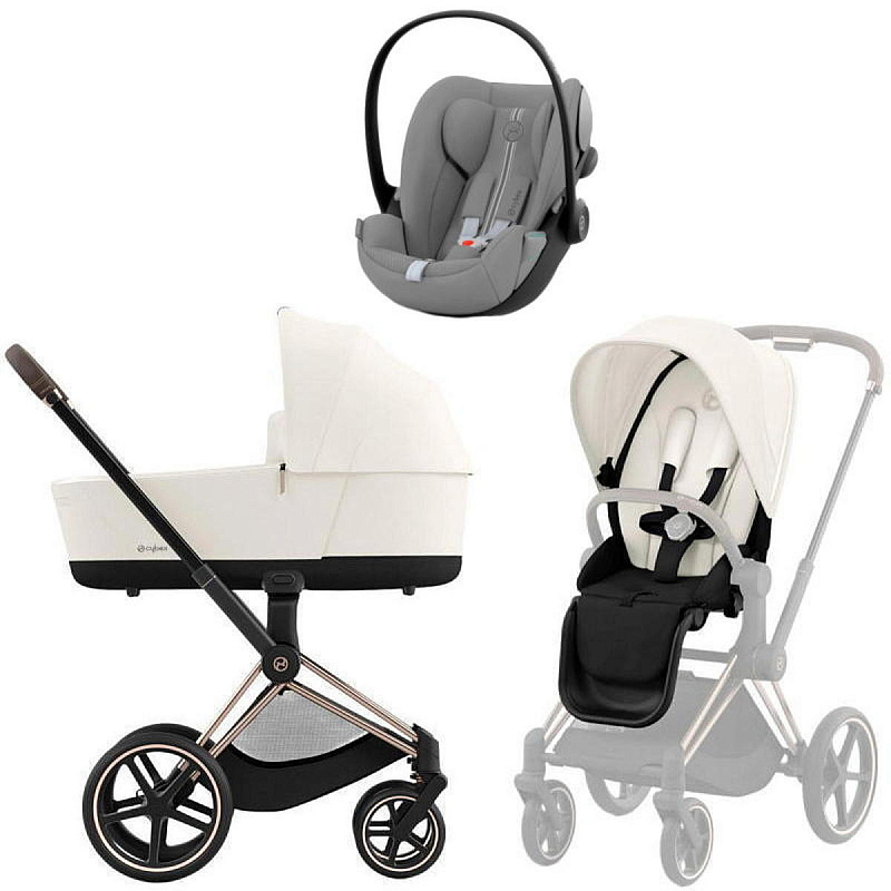 Коляска Cybex Priam IV Rosegold complete Cloud G Stone Grey Plus Base G 3 в 1 Off White