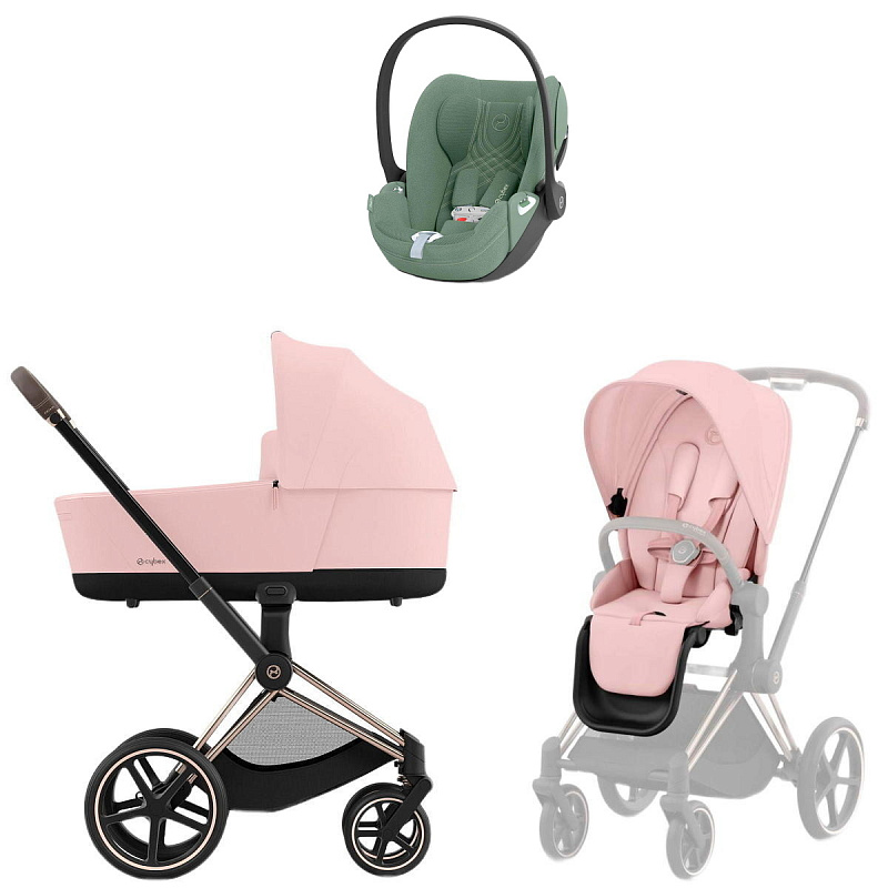 Коляска Cybex Priam IV Rosegold complete Cloud T Leaf Green Plus Base T 3 в 1 Peach PinkНет оценокХарактеристики