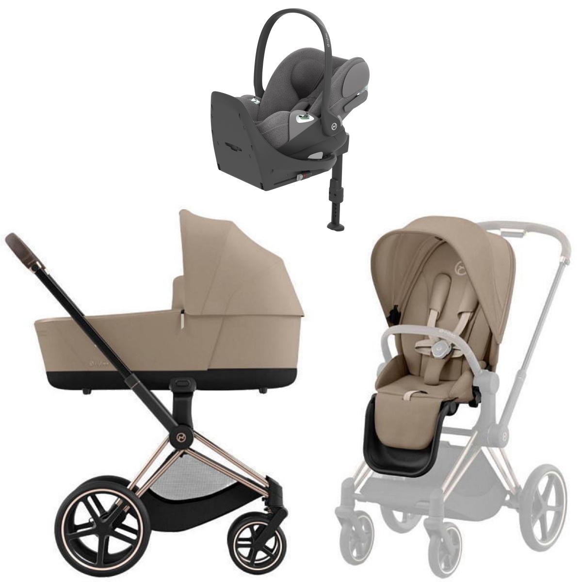 Коляска Cybex Priam IV Rosegold complete Cloud T Mirage Grey Plus Base T 3 в 1 Cozy Beige