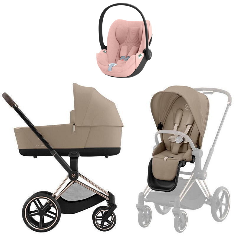 Коляска Cybex Priam IV Rosegold complete Cloud T Peach Pink Plus Base T 3 в 1 Cozy Beige