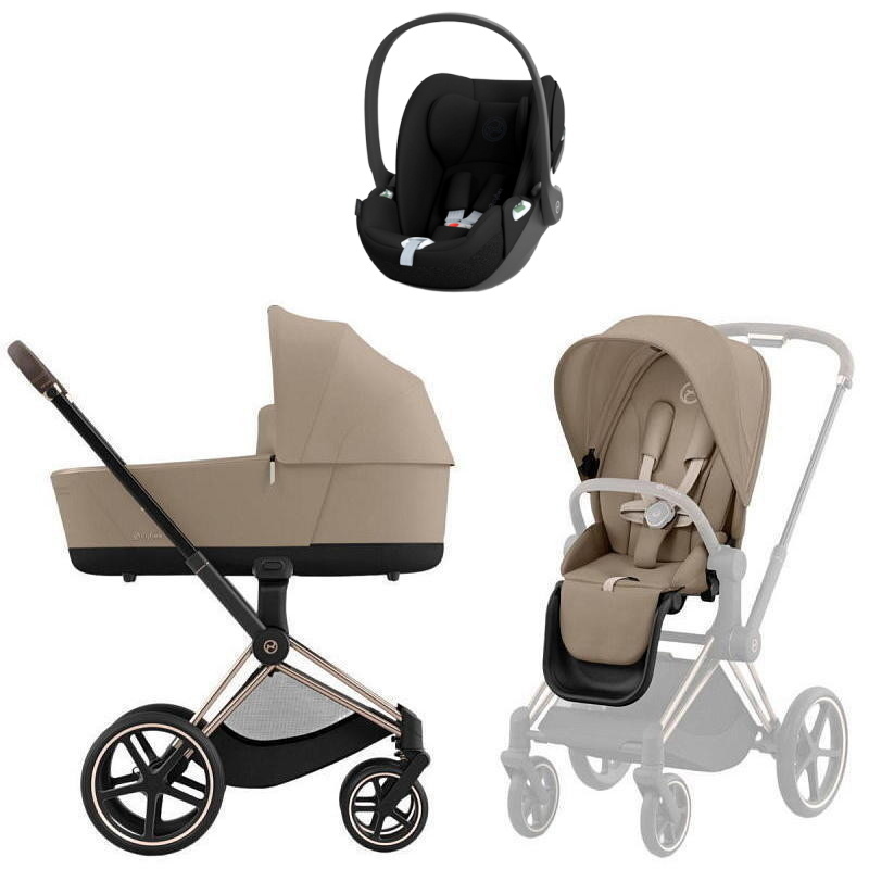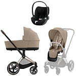 Коляска Cybex Priam IV Rosegold complete Cloud T Sepia Black Base T 3 в 1 Cozy Beige