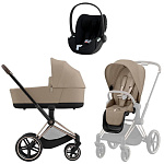 Коляска Cybex Priam IV Rosegold complete Cloud T Sepia Black Plus Base T 3 в 1 Cozy BeigeНет оценокХарактеристики